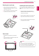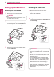 ASSEMBLING AND PREPARING English ENG Setting Up the Monitor set Detaching the stand base Attaching the Stand Base 1 Place the monitor's screen face down. 1 Place the monitor's screen face down. To protect the screen from scratches, cover the surface with a soft cloth. CAUTION To protect the screen from scratches, cover yy the surface with a soft cloth. 2 Check the position (at the front and rear) of 2 Using a coin, turn the screw in the stand base counterclockwise.