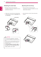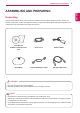 ASSEMBLING AND PREPARING Unpacking Please check whether all the components are included in the box before using the product. If there are missing components, contact the retail store where you purchased the product. Note that the product and components may look different from those shown here. User Manual/ Software Installation CD/ Card Power Cord Stand Base 15-pin D-SUB Signal Cable AC/DC adaptor A-B Type USB Cable CAUTION Only use an approved LG power adapter.