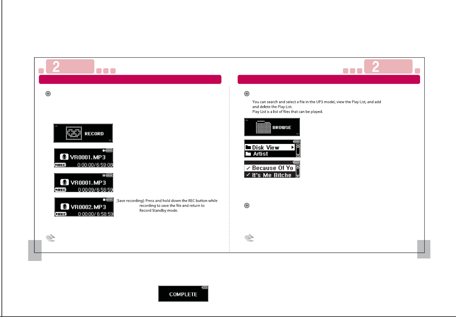 Transfer the les through the USB and turn the device on. The les will be automatically