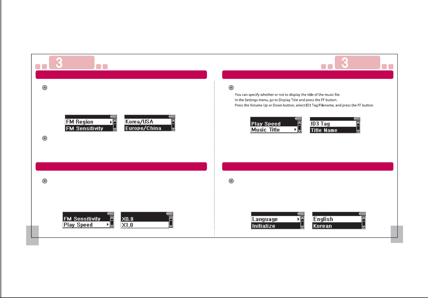 In the Setting menu, go to FM Region and press the FF button.