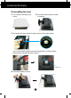 Connecting the Display Disassembling the stand 1. Put a cushion or soft cloth on a flat 2. Place the monitor face down as shown surface. in the picture. 3. Change your lock on the monitor as it follows and turn it in the arrow direction. If you can't release the Stand Base even the Locking Knob is at a release position, Please push the indicated knob down and retry it. Locking Knob 4. Pull out the Stand Base to remove.