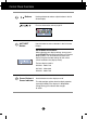 On Screen Display(OSD) Selection and Adjustment Main menu Sub menu Description PICTURE BRIGHTNESS To adjust the brightness of the screen. CONTRAST To adjust the contrast of the screen. GAMMA Set your own gamma value. : -50 / 0 / 50 On the monitor, high gamma values display whitish images and low gamma values display high contrast images. MENU : Exit : Decrease : Increase SET : Select another sub-menu COLOR PRESET Select the screen color.