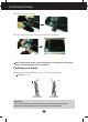 Connecting the Display Before setting up the monitor, ensure that the power to the monitor, the computer system, and other attached devices is turned off. Connecting the stand 1. Place the monitor with its front facing downward on a soft cloth. 2. Assemble the Stand Body into the product in the correct direction as shown in the picture. Make sure you push it until you hear it “click”. Hinge Body Stand Body 3. Assemble the Stand Base(Front, Rear) into the Stand Body in the correct direction.