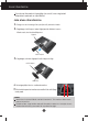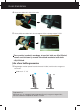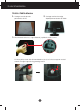 Kuvari ühendamine Statiivi lahtivõtmine 1. Asetage tasasele pinnale 2. Asetage monitor ekraaniga pehmendus või riie. 3. allpool pehmendusele või riidele. Muutke tootel lukustust, nagu näidatud, ja pöörake noole suunas. Kui aluse põhja ei ole võimalik eemaldada ka juhul, kui lukustusnupp on avatud asendis. Suruge nupp alla ning proovige uuesti.