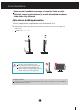 Kuvari ühendamine Enne kuvari ülesseadmist kontrollige, kas arvuti, kuvar ning teised ühendatud seadmed on välja lülitatud. Jala aluse ühendamine 1. Pange kuvar ekraaniga üles padjale või pehmele riidele. 2. Paigaldage statiivi korpus toote külge 3.Paigaldage statiivialus õigetpidi statiivi joonisel näidatud suunas. Lükake seda, kuni kuulete klõpsatust. korpuse külge. Liigend statiivi korpus statiivi korpus statiivialus 4. Painutage põhja lukustus vertikaalasendisse. . 5.