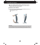 Anschließen des Displays Abbauen des Standfußes 1. Legen Sie ein Kissen oder ein weiches 2. Legen Sie den Monitor mit der Tuch auf eine ebene Oberfläche. Vorderseite nach unten auf das Kissen oder das weiche Tuch. 3. Drehen Sie die Verriegelung in Pfeilrichtung in die abgebildete Stellung. Wenn Sie die Standplatzunterseite nicht freigeben können, though die verriegelnrippe in einer Freigabeposition ist, drücken bitte die angezeigte Rippe runter und wiederholen. 4. Zum Abnehmen den Gerätefuß abziehen.