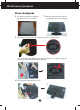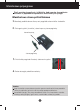 Monitoriaus prijungimas Stovo i‰ardymas 1. 3. 2. Monitori˜ pastatykite ekranu Ïemyn Ant plok‰ãio pavir‰iaus padòkite pagalvòl´ ar mink‰tà skuduròl∞. ant pagalvòlòs ar mink‰to skuduròlio. Pakeiskite savo gaminio fiksatori˜, kaip reikia, ir pasukite j∞ stròlòs kryptimi. Jegu Js negalite paimti pjedestalà nors spynos pozicija yra laisva, pra‰om paspausti spynà pagal paveikslo rodikl∞ ir pabantyti dar karta. 4. Stovà i‰traukite, kad galòtumòte j∞ nuimti.