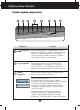Valdym˜ ∞tais˜ funkcijos Valdymas mygtuka mygtukas ( Funkcija Paspausdami nurodytus mygtukus, ekraniniame meniu i‰rinkite arba sureguliuokite i‰rinktàj∞ parametrà. I‰samesnòs informacijos ie‰kokite L19 psl. ) mygtukas (SOURCE) AUTO/SET mygtukas Spartusis funkcinis mygtukas "SOURCE" (‰altinis) ·iuo mygtuku ∞junkite D-Sub arba DVI jungt∞. ·i funkcija naudojama tuomet, kai prie ekrano yra prijungti du kompiuteriai. Gamyklinis parametras yra S-Sub. ·iuo mygtuku pasirinkite piktogramà ekrano displòjuje.