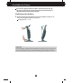 Anschließen des Displays Abbauen des Standfußes 1. Legen Sie ein Kissen oder ein weiches 2. Legen Sie den Monitor mit der Tuch auf eine ebene Oberfläche. Vorderseite nach unten auf das Kissen oder das weiche Tuch. 3. Drehen Sie die Verriegelung in Pfeilrichtung in die abgebildete Stellung. Wenn Sie die Standplatzunterseite nicht freigeben können, though die verriegelnrippe in einer Freigabeposition ist, drücken bitte die angezeigte Rippe runter und wiederholen. 4. Zum Abnehmen den Gerätefuß abziehen.
