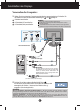 Anschließen des Displays Bevor Sie das Display in Betrieb nehmen, achten Sie darauf, dass die Stromversorgung zum Gerät, zum Computersystem und zu anderen angeschlossenen Geräten unterbrochen ist. Positionieren des Monitors Verwenden des Kabelhalters 1 3 2 Führen Sie die Anschlusskabel wie gezeigt durch den Kabelhalter, um die Kabel zusammenzuhalten. Nur wenn Sie den Kabelhalter verwenden, können Sie die Drehfunktion der Anzeige problemlos einsetzen.