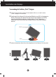 Anschließen des Displays Bevor Sie das Display in Betrieb nehmen, achten Sie darauf, dass die Stromversorgung zum Gerät, zum Computersystem und zu anderen angeschlossenen Geräten unterbrochen ist. Positionieren des Monitors Verwenden des Kabelhalters 1 3 2 Führen Sie die Anschlusskabel wie gezeigt durch den Kabelhalter, um die Kabel zusammenzuhalten. Nur wenn Sie den Kabelhalter verwenden, können Sie die Drehfunktion der Anzeige problemlos einsetzen.