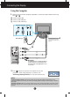 Connecting the Display Using the Computer 1. Make sure to turn off the computer and product. Connect the cable as below sketch map form 1 to 2 . A Connect Audio Cable B Connect Dsub Cable (PC) C Connect Dsub Cable (Mac) Power Cord Analog signal Audio signal Wall-outlet type Headphone/Earphone Input Automatically mutes the speaker volume when the headphones are plugged in.