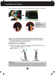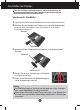 Anschließen des Displays 5. Drücken Sie die Sperrlasche nach innen und nehmen Sie den Standfuß vom Gerät ab. Warnung: Es kann zu Fingerverletzungen kommen! Richtig Falsch Bevor Sie das Display in Betrieb nehmen, achten Sie darauf, dass die Stromversorgung zum Gerät, zum Computersystem und zu anderen angeschlossenen Geräten unterbrochen ist. Positionieren des Monitors 1. Stellen Sie die Position des Bildschirms auf unterschiedliche Weise ein, um einen höchstmöglichen Komfort zu erreichen.