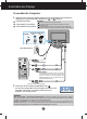 Anschließen des Displays Verwenden des Computers 1. Stellen Sie sicher, dass der Computer und der Monitor ausgeschaltet sind. Schließen Sie die Kabel wie in der nachstehenden Abbildung für 1 und 2 gezeigt an. A DVI-Kabel anschließen HINWEIS Dies ist eine vereinfachte Darstellung der Rückansicht. B D-Sub-Kabel (PC) anschließen Die Rückansicht zeigt ein allgemeines Modell. Ihr Display kann von dieser Darstellung abweichen.