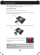 Connecting the Display Before setting up the monitor, ensure that the power to the monitor, the computer system, and other attached devices is turned off. Connecting the stand 1. Place the monitor with its front facing downward on a soft cloth. 2. Assemble the Stand Body into the product in the correct direction as shown in the picture. Make sure you push it until you hear it “click”. Hinge Body Stand Body 3. Assemble the Stand Base(Front, Rear) into the Stand Body in the correct direction.