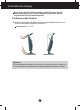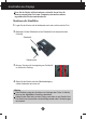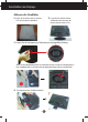 Anschließen des Displays Abbauen des Standfußes 1. Legen Sie ein Kissen oder ein weiches 2. Legen Sie den Monitor mit der Tuch auf eine ebene Oberfläche. Vorderseite nach unten auf das Kissen oder das weiche Tuch. 3. Drehen Sie die Verriegelung in Pfeilrichtung in die abgebildete Stellung. Wenn Sie die Standplatzunterseite nicht freigeben können, though die verriegelnrippe in einer Freigabeposition ist, drücken bitte die angezeigte Rippe runter und wiederholen. 4. Zum Abnehmen den Gerätefuß abziehen.