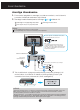 Kuvari ühendamine 3. Toe põhja kinnikeeramisel kasutage münti; kinnitage põhi, keerates kruvi päripäeva. 4. Kergitage ja keerake monitor asendisse ekraaniga enda poole peale seda, kui olete kinnitatava kaabli siseosa ühendanud. 5. Kui soovite monitori toe küljest eemaldada, keerake mündi abil kruvi vastupäeva. Tähtis Joonisel on kujutatud üldiselt monitori ühendamist. Teie monitor võib erineda joonisel kujutatust. Toodet kandes, ärge hoidke seda põhi ülespidi ja hoides kinni vaid jala alusest.