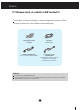 Tarvikud !!! Täname teid, et valisite LGE tooted !!! Kontrollige, et teie monitoriga on kaasas järgnevad esemed. Mõne eseme puudumisel võtke ühendust edasimüüjaga. Kasutusjuhend või kaardid Toitejuhe (oleneb riigist) DVI-D-signaalikaabel (Pole saadaval kõikides riikides) 15 viiguga D-Subsignaalikaabel (Paigaldamise huvides võib see kaabel olla toote külge kinnitatud enne tarnimist.) MÄRKUS Tarvikud võivad erineda pildil olevatest.