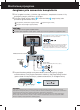 Monitoriaus prijungimas Jungimas prie asmeninio kompiuterio 1. Prie‰ jungdami monitori˜, ∞sitikinkite, jog monitoriaus, kompiuterio sistemos ir kit˜ prijungiam˜ ∞rengini˜ maitinimas yra ∞jungtas. ir maitinimo laidà priverÏkite signalo kabelio varÏtà. 2. Prijunkite signalo ∞vesties kabel∞ 1 A Øjungti DVI-D (skaitmeninio signalo) kabel∞ B Øjungti D-sub (analoginio signalo) kabel∞ 2 pagal tvarkà, tada C Prijunkite garso laidà PASTABA Tai yra paprasãiausias galinio skydelio vaizdas.