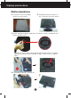 Displeja pievieno‰ana Stat¥va izjauk‰ana 1. Uz plakanas virsmas novietojiet 2. Novietojiet monitoru ar ekrÇnu uz spilvenu vai m¥kstu drÇnu. leju uz spilvena vai m¥kstas drÇnas. 3. Mainiet stiprinÇjuma poz¥ciju produktam, kÇ redzams zemÇk, un pagrieziet to ar bulti¿u norÇd¥tÇ virzienÇ. Gad¥juma ja nevar atvienot statnes pamatu kad aizslïga spraislis ir novietots atbr¥vo‰anas poz¥cijÇ, ldzu nospiediet aizslïgas spraisli uz leju un meÆiniet vïlreiz. 4. Lai no¿emtu pamatni, izvelciet to.