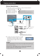 Displeja pievieno‰ana Datora izmanto‰ana 1. A B C D PÇrliecinieties, vai dators un izstrÇdÇjums ir izslïgts. Pievienojiet kabeli, kÇ parÇd¥ts tÇlÇk redzamajÇ shïmÇ 1 l¥dz 2 . Pieslïdziet DVI-D kabeli PIEZ±ME Tas ir vienkÇr‰ots skats no aizmugures. Pieslïdziet D-sub kabeli (PC) ·is skats no aizmugures parÇda parastu modeli, taãujsu displejs var at‰˙irties no ‰eit redzamÇ.