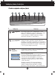 Monitoriaus prijungimas Stovo i‰ardymas 1. 3. 2. Monitori˜ pastatykite ekranu Ïemyn Ant plok‰ãio pavir‰iaus padòkite pagalvòl´ ar mink‰tà skuduròl∞. ant pagalvòlòs ar mink‰to skuduròlio. Pakeiskite savo gaminio fiksatori˜, kaip reikia, ir pasukite j∞ stròlòs kryptimi. Jegu Js negalite paimti pjedestalà nors spynos pozicija yra laisva, pra‰om paspausti spynà pagal paveikslo rodikl∞ ir pabantyti dar karta. 4. Stovà i‰traukite, kad galòtumòte j∞ nuimti.