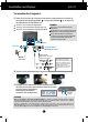 Anschließen des Displays Bevor Sie das Display in Betrieb nehmen, achten Sie darauf, dass die Stromversorgung zum Gerät, zum Computersystem und zu anderen angeschlossenen Geräten unterbrochen ist. Montieren des Standfußes 1. Legen Sie den Monitor mit der Vorderseite nach unten auf ein weiches Tuch. 2. Montieren Sie das Ständerteil am Produkt in der in der Abbildung gezeigten. Ständerteil Gelenkteil 3. Überprüfen Sie die Ausrichtung des Standfußsockels und befestigen Sie diesen an der Standfußverbindung.