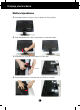 Displeja pievieno‰ana Pirms uzstÇd¥t monitoru, nodro‰iniet, lai monitoram, datora sistïmai un citÇm pievienotajÇm ier¥cïm tiktu izslïgta strÇvas padeve. Displeja novieto‰ana 1. Noregulïjiet ekrÇna paneli, lai panÇktu maksimÇli ïrtu tÇ stÇvokli. VertikÇlÇ le¿˙a diapazons : -5˚~22˚ 22 -5 ERGONOMISKS Lai uzturïtu ergonomisku un komfortablu skat¥‰anÇs stÇvokli, ieteicams, lai monitora pie‰˙iebuma le¿˙is virzienÇ uz priek‰u nepÇrsniegtu 5 grÇdus.
