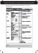 Auswählen und Einstellen von Funktionen der Bildschirmanzeige (OSD) Hauptmenü Untermenü Beschreibung SETUP SPRACHE Wählen Sie hier die Sprache, in der die Funktionen angezeigt werden sollen. OSD BILDLAGE Einstellen der Position des OSD-Fensters auf dem Bildschirm. WEISS BALANCE Wenn das Ausgangssignal der Videokarte nicht die Spezifikationen erfüllt, sind möglicherweise die Farben auf Grund von Videosignalverzerrungen schlechter.