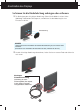 Anschließen des Displays Neigungsbereich : -5˚~15˚ Warnung Oberteil Legen Sie Ihre Hand (Finger) nicht zwischen Oberteil und Sockel, wenn Sie den Winkel einstellen. Ihre Hand (Finger) könnte eingeklemmt oder verletzt werden. Ergonomie Sockel Es wird empfohlen, den Monitor um nicht mehr als 5 Grad nach vorne zu neigen, um in einer komfortablen und ergonomischen Betrachtungsposition bleiben zu können. Wichtig Diese Abbildung zeigt das Verfahren zum Anbringen des Fußes.