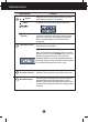 Auswählen und Einstellen von Funktionen der Bildschirmanzeige (OSD) Hauptmenü Untermenü Beschreibung BILD HELLIGKEIT Einstellen der Helligkeit des Bildschirms. KONTRAST Einstellen des Bildschirmkontrastes. GAMMA Legen Sie den gewünschten GammaWert fest. -50/0/50 Auf dem Monitor zeigen hohe GammaWerte weißliche Bilder, niedrige Gamma-Werte dagegen Bilder mit hohem Kontrast. MENU : Beenden : Verkleinern : Vergrößern SET : Anderes Untermenü auswählen FARBEN VOREIN Auswählen der Bildschirmfarben.