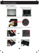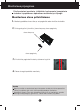 Monitoriaus prijungimas Stovo i‰ardymas 1. 3. 2. Monitori˜ pastatykite ekranu Ïemyn Ant plok‰ãio pavir‰iaus padòkite pagalvòl´ ar mink‰tà skuduròl∞. ant pagalvòlòs ar mink‰to skuduròlio. Pakeiskite savo gaminio fiksatori˜, kaip reikia, ir pasukite j∞ stròlòs kryptimi. Jegu Js negalite paimti pjedestalà nors spynos pozicija yra laisva, pra‰om paspausti spynà pagal paveikslo rodikl∞ ir pabantyti dar karta. 4. Stovà i‰traukite, kad galòtumòte j∞ nuimti.