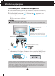 Monitoriaus prijungimas Jungimas prie asmeninio kompiuterio 1. Prie‰ jungdami monitori˜, ∞sitikinkite, jog monitoriaus, kompiuterio sistemos ir kit˜ prijungiam˜ ∞rengini˜ maitinimas yra ∞jungtas. ir maitinimo laidà priverÏkite signalo kabelio varÏtà. 2. Prijunkite signalo ∞vesties kabel∞ 1 2 pagal tvarkà, tada A Øjungti DVI-D (skaitmeninio signalo) kabel∞ B Øjungti D-sub (analoginio signalo) kabel∞ PASTABA Tai yra paprasãiausias galinio skydelio vaizdas.