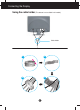Connecting the Display Before setting up the monitor, ensure that the power to the monitor, the computer system, and other attached devices is turned off. Connecting the stand 1. Place the monitor with its front facing downward on a soft cloth. 2. Assemble the Stand Base(Front, Rear) into the Stand Body in the correct direction. Stand Body Stand Base 3. Tie down the base lock to perpendicularity direction. 4. Once assembled take the monitor up carefully and face the front side.