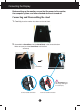 Connecting the Display Before setting up the monitor, ensure that the power to the monitor, the computer system, and other attached devices is turned off. Positioning your display After installation, adjust the angle as shown below. 1. Adjust the position of the panel in various ways for maximum comfort. Tilt Range: -5˚ to 15˚ 15 -5 Do not touch or press the screen when adjusting the angle of the monitor.