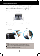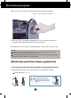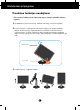 Monitoriaus prijungimas Prie‰ pastatant monitori˜, ∞sitikinkite, kad aparato, kompiuterio sistemos ir papildomos aparatros maitinimai yra i‰jungti. Kaip uÏdòti arba nuimti stovo pagrindà 1. Monitori˜ padòkite ekranu Ïemyn ant pagalvòlòs arba mink‰to skuduròlio. 2. Stovelio kablius sutapatinkite su monitoriaus pagrinde esanãiais py‰iais. 3. Kablius ∞ki‰kite ∞ ply‰ius.