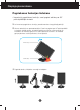 Displeja pievieno‰ana Pirms uzstÇd¥t monitoru, nodro‰iniet, lai monitoram, datora sistïmai un citÇm pievienotajÇm ier¥cïm tiktu izslïgta strÇvas padeve. Displeja novieto‰ana 1. Noregulïjiet ekrÇna paneli, lai panÇktu maksimÇli ïrtu tÇ stÇvokli. VertikÇlÇ le¿˙a diapazons : -5˚~ 18˚ -5˚ Groz¥‰ana ap savu asi : 356˚ 18˚ Augstuma diapazons: maksimÇli 4,33 collas (110,0 mm) 110,0 mm Vispirms no¿emiet fiksatoru.