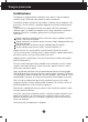 Saugos priemonòs Instaliavimas DraudÏiama ant ∞renginio elektros laido dòti sunkius daiktus. Taip pat negalima monitori˜ ∞jungti ∞ tinklo lizdà, jeigu jo elektros laidas yra paÏeistas. DraudÏiama naudotis monitoriumi ‰alia vandens, kaip antai vonios kambaryje, ‰alia praustuvòs, virtuvòs kriauklòs, sklabykloje, drògname rsyje arba netoli plaukymo baseino. Turite uÏtikrinti tai, kad ∞renginio veikimo metu nebt˜ uÏkim‰tos monitoriaus vòdinimo angos, nes darbo metu aparatas ∞kaista.