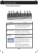 Ekraninio meniu sistemos (OSD) i‰rinkimas ir reguliavimas Pagrindinis meniu Submeniu Apra‰ymas TRACKING TRACKING HORIZONTAL Vaizdo centravimas j∞ pastumiant ∞ kair´ arba ∞ de‰in´ VERTICAL Vaizdo centravimas j∞ pastumiant ∞ vir‰˜ arba ∞ apaãià CLOCK Yra sumaÏinamos bet kokios vertikalios juostos arba ruoÏeliai, kurie yra ∞Ïirimi ekrano fone. PHASE Yra reguliuojamas ekrane esanãio vaizdo ry‰kumas.