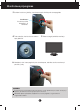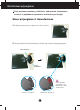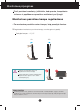 Monitoriaus prijungimas Prie‰ pastatant monitori˜, ∞sitikinkite, kad aparato, kompiuterio sistemos ir papildomos aparatros maitinimai yra i‰jungti. Monitoriaus pasvirimo kampo reguliavimas - Po montavimo pasukite norimu kampu, kaip parodyta Ïemiau. 1. Reguliuodami monitoriaus pasvirimo kampà, suraskite geriausià padòt∞. Pokrypio kampas : -2° ∞ 15° 15 -2 Nelieskite ir nespauskite ekrano, kai reguliuosite monitoriaus kampà. Nustatydami ekrano kampà, neki‰kite pir‰t˜ tarp monitoriaus apaãios ir stovo.