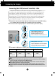 Connecting the Display To arrange the cables Connect the power cord and the signal cable as shown in the figure and then fix them to the cable holders 1 and 2. 1. Please insert the cable holder1 into the hole. 2. Please put the power cord and the signal cable in the cable holder 1. Cable holder 1 3. Please put the power cord and the signal cable in the cable holder 2. While pressing the bottom of cable holder 2 with one hand, pull the top of it with the other hand as shown in the picture.