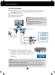Kuvari ühendamine Kaablite seadminecables Ühendage toitejuhe ja signaalikaabel, nagu joonisel näidatud ning seejärel paigaldage need kaablihoidikutesse 1 ja 2. 1. 2. Palun pange toitejuhe ja Palun sisestage kaablihoidik 1 avasse. signaalikaabel kaablihoidikusse 1. Kaabli hoidik1 3. Palun pange toitejuhe ja signaalikaabel 2. kaablihoidikusse. Vajutades ühe käega 2. kaablihoidiku alumist osa, tõmmake teise käega selle ülemist osa, nagu pildil näidatud.