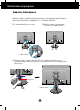 Monitoriaus prijungimas Prie‰ pastatant monitori˜, ∞sitikinkite, kad aparato, kompiuterio sistemos ir papildomos aparatros maitinimai yra i‰jungti. Monitoriaus pasvirimo kampo reguliavimas 1. Reguliuodami monitoriaus pasvirimo kampà, suraskite geriausià padòt∞. Pokrypio kampas : -5°~20° Pasukimas : 350° Auk‰tis: ne daugiau kaip 3,94 colio (100 mm) 100,0mm * Prie‰ reguliuojant auk‰t∞, pra‰ome i‰imti Fiksavimo kai‰tel∞.