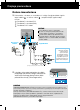 Displeja pievieno‰ana Datora izmanto‰ana 1. PÇrliecinieties, vai dators un izstrÇdÇjums ir izslïgts. Sec¥gi pieslïdziet signÇlu ieejas kabelim 1 un strÇvas vadam 2 , tad pieskrvïjiet signÇla kabe∫a skrves. A Pieslïdziet D-sub kabeli (PC) B Pieslïdziet D-sub kabeli (Mac) C Pieslïdziet DVI-D kabeli PIEZ±ME Tas ir vienkÇr‰ots skats no aizmugures. ·is skats no aizmugures parÇda parastu modeli, taãujsu displejs var at‰˙irties no ‰eit redzamÇ.