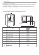 INSTALLATION 17 2 5 Lift the door from the middle hinge pin and remove the door. ENGLISH Remove the screw (1) from the hinge cover at the top of the refrigerator. Lift the hook (not visible), located at the bottom of the front side of the cover (2) with a flat-head screwdriver. CAUTION ••Place the door, inside facing up, on a nonscratching surface. 3 Remove the cover and pull out the tube (1). Disconnect all wire harnesses (2). Unscrew the ground wire (3).