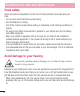 • • • • If you need to replace the battery, take it to the nearest authorised LG Electronics service point or dealer for assistance. Always unplug the charger from the wall socket after the phone is fully charged to save unnecessary power consumption of the charger. Actual battery life will depend on network configuration, product settings, usage patterns, battery and environmental conditions. Make sure that no sharp-edged items such as animal’s teeth or nails, come into contact with the battery.