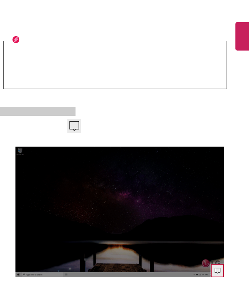 1 Press the Action Center [ ] icon on the right side of the taskbar.