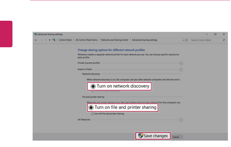 3 Enable [Change sharing options for different network profiles] and save the changes.