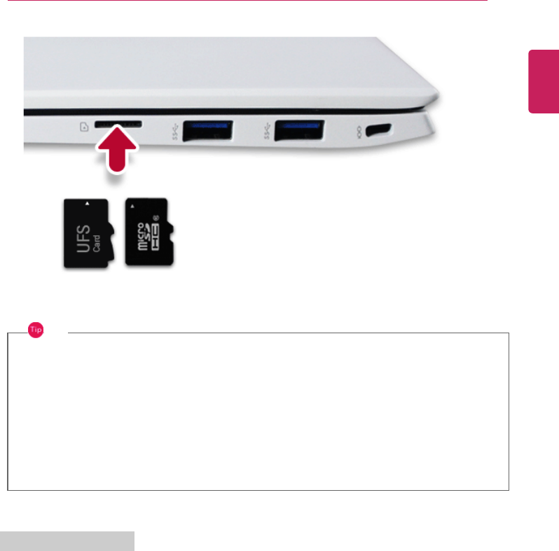 • UFS and Micro SD memory cards can be used only as data storage devices and do not