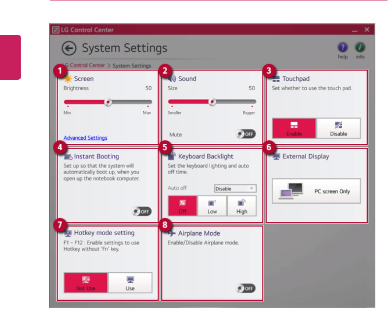 3 Touchpad: Allows you to set whether to use the touchpad.